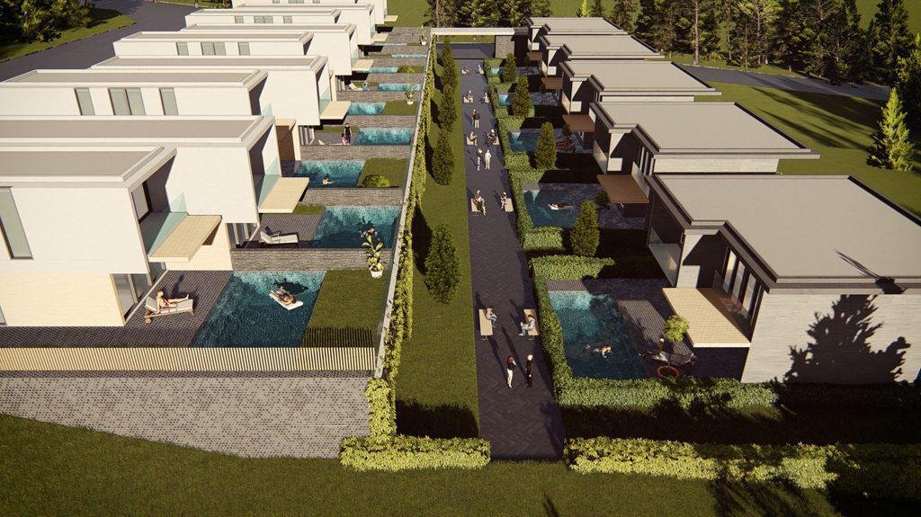 • Her villada müstakil yüzme havuzu, hamam, sauna ve hobi odaları bulunur.
